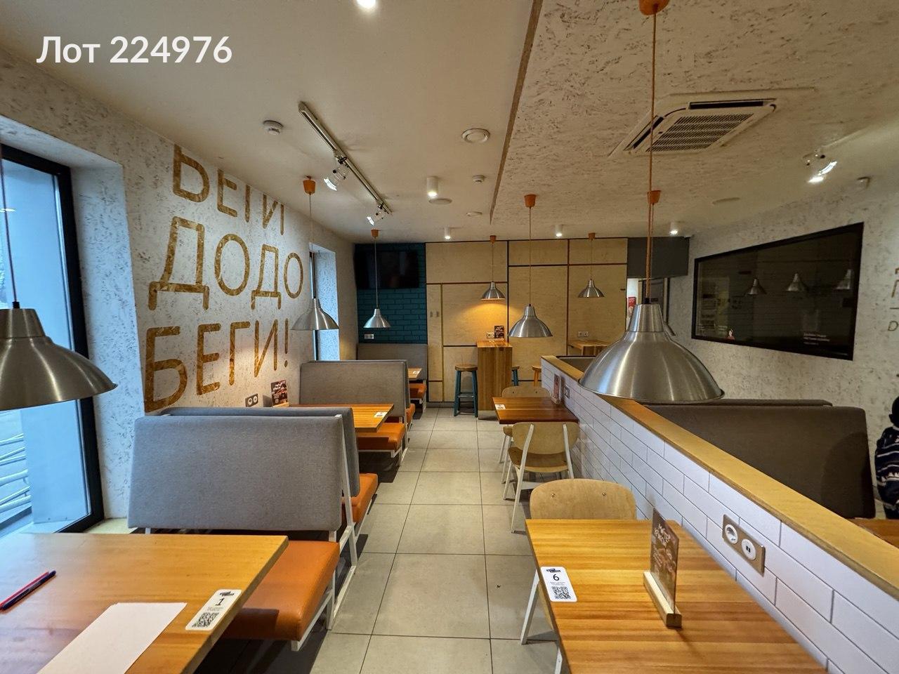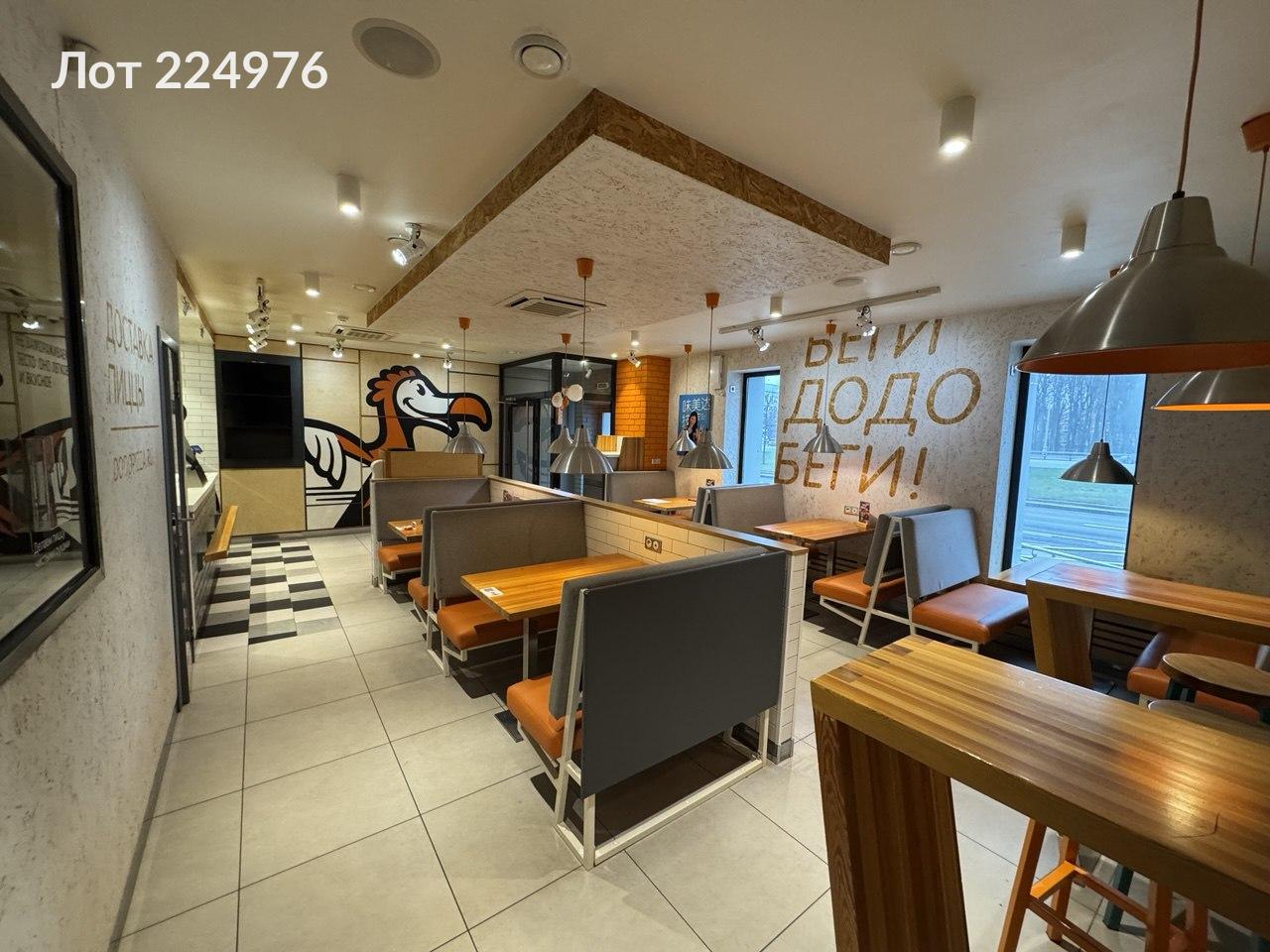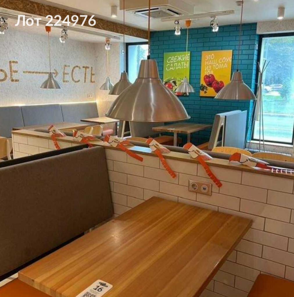 Лот № 224976 Предлагается помещение для размещения объекта общественного питания, ранее использовавшееся под пиццерию "Додо Пицца". Помещение полностью оборудовано для деятельности в сфере пиццерийного бизнеса и имеет удовлетворительное состояние после проведения ремонтных работ.Планировка помещения включает три зала, кухню, подсобные помещения, холодильную и морозильную камеры, а также три санузла. Все помещения оснащены системами кондиционирования воздуха, приточной вентиляцией, системами видеонаблюдения и охранной сигнализацией.